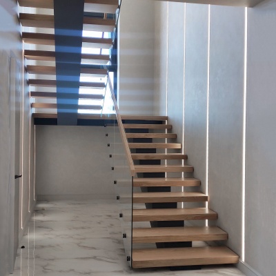 Более 20 лет мы занимаемся изготовлением лестниц и смело заявляем, что готовы взяться за самые сложные и амбициозные проекты. Своим клеентам мы представляем полный цикл услуг которые включают в себя замеры и предварительный эскиз, 3d моделирование и визуализацию, изготовление металлокаркаса и обшивки лестницы, монтаж и постгарантийное обслуживание. Особое внимание стоит обратить на технологию создания лестниц на основе столярного щита состоящего из нескольких слоев фанеры и массива дуба толщиной от 1,5 мм. Отделка ступеней производится полуматовым лаком. Такой способ выбран для того, чтобы акцентировать рисунок и подчеркнуть красоту натурального дерева. Все это дает возможность получить исключительные характеристики - стабильность геометрии при изменении температуры и влажности в сочетании с прекрасным внешним видом и доступной ценой. Стоит отметить, что не случайно материалом, используемым при изготовлении деталей лестниц, является дуб. Данная порода обладает особой отличительной чертой – резко выраженной крупной текстурой и высокой прочностью. Именно поэтому наши лестницы, обладают особой надежностью и совершенством силуэта, продиктованным природными свойствами самой древесины. Они подчеркнут оригинальность архитектурного решения, наполнив дом теплом, гармонично впишутся в различные стили помещения, не нарушив при этом неповторимой атмосферы Вашего дома. За все время нашей работы с применением этой технологии было изготовленно более 1800 лестниц .